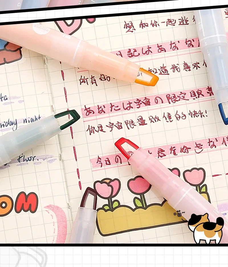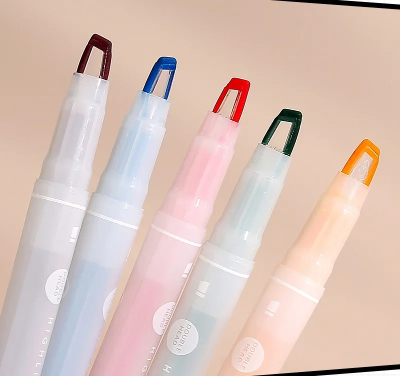 5 Colors/Set Double Unique Window Tip Highlighter Pen Double Head Pastel Color highlighters Marker School Stationery Supplies