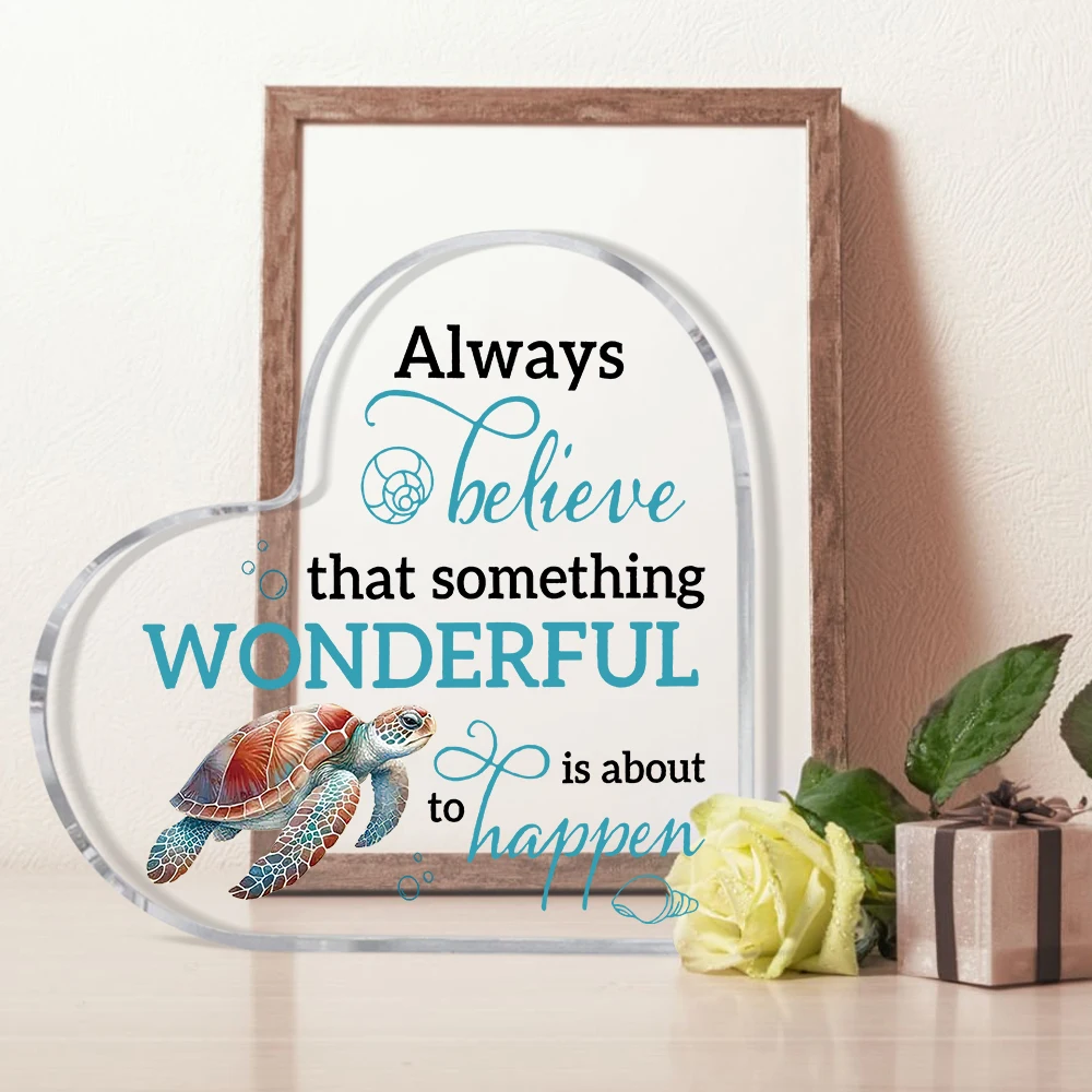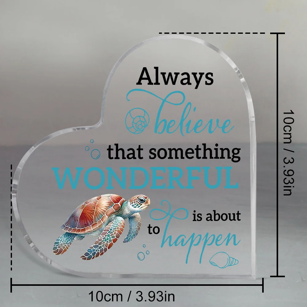Acrylic Inspirational Quote Heart-Shaped Sign with Sea Turtle Design - Classic Tabletop Decor for Home & Office