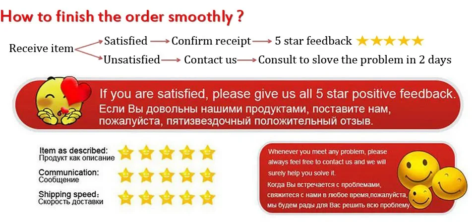 2.The expected delivery date will be affected by customs, weather etc., sometimes it may take a little longer to receive,Please contact us when you have not received the package to extend your order protection time