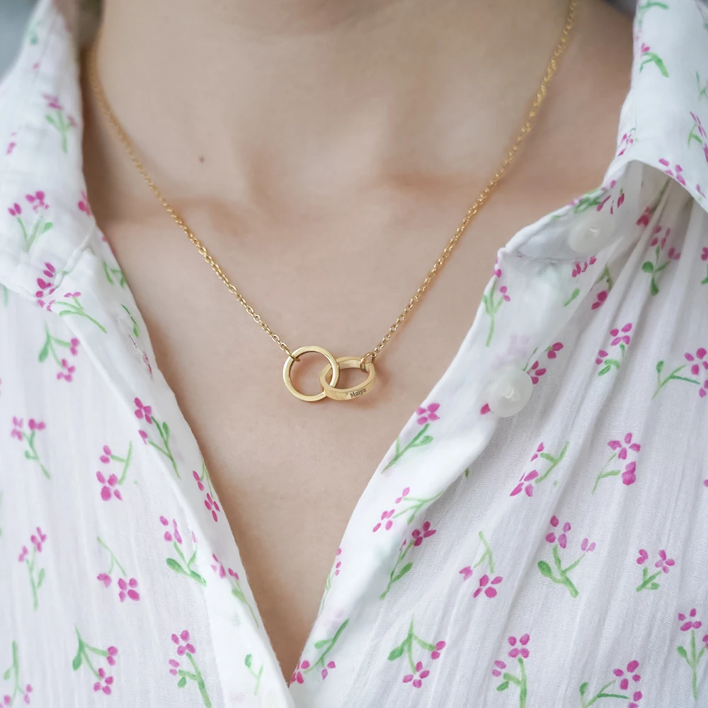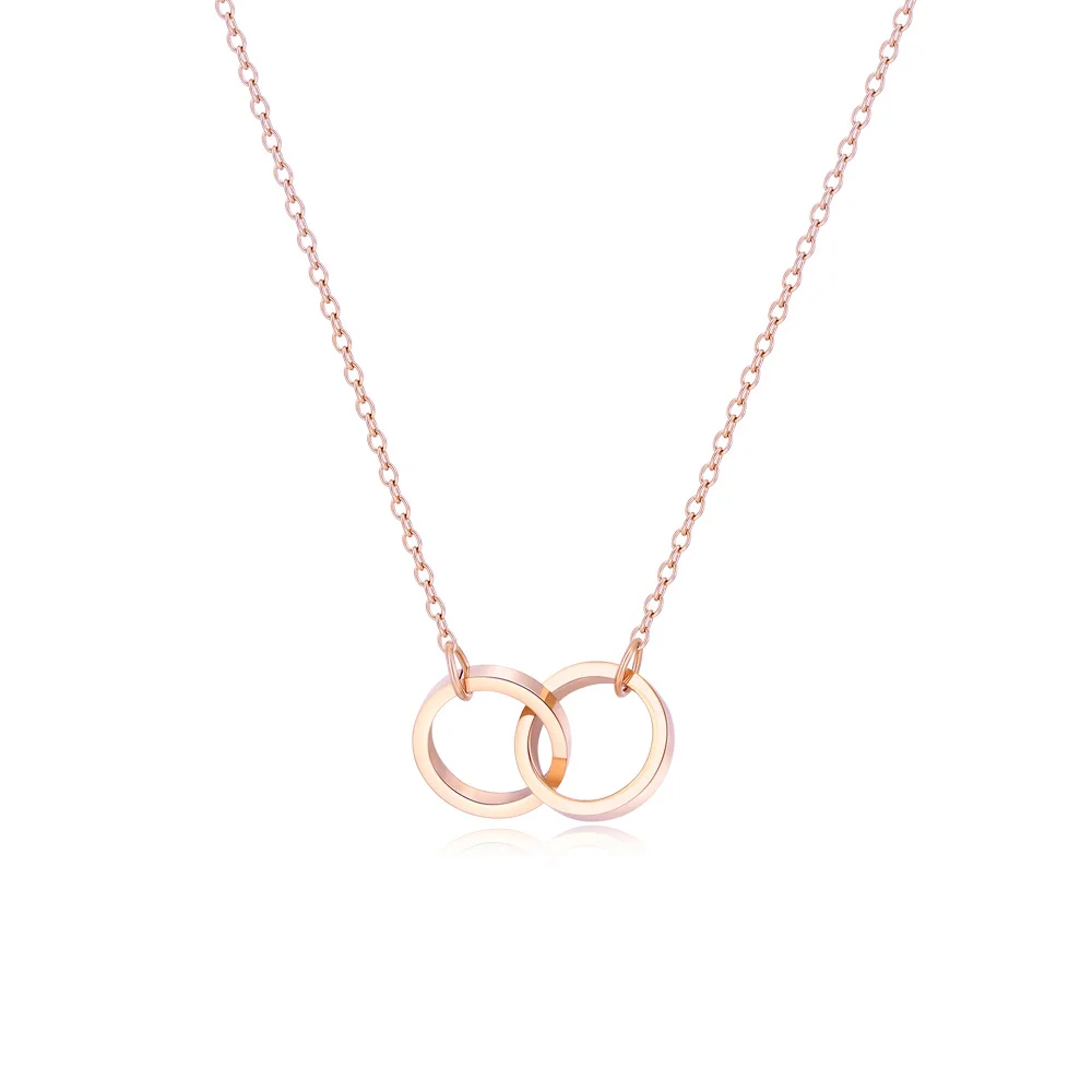 Classic stainless steel hollow double ring carve necklace for women fashion charm friendship Chain type Jewelry gift