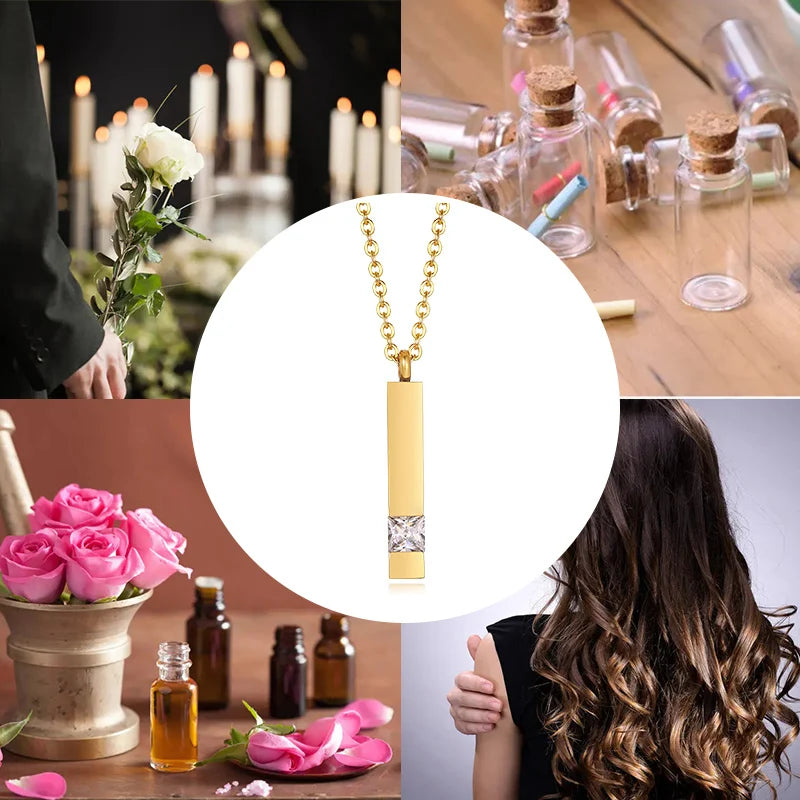 Vnox Urn Necklaces for Ashes Memorial Cremation Jewelry, Stainless Steel Bar Pendant for Women Men,Keepsake Gift with CZ Stone